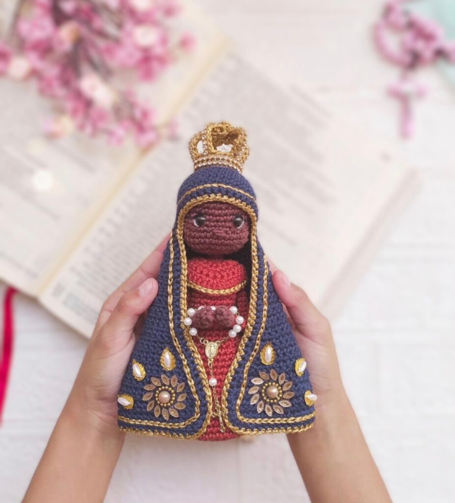 Acompanhe esta jornada e permita-se envolver pela beleza da devoção expressa em cada fio e cada ponto. Descubra mais no meu perfil e sinta a presença do Sagrado em cada criação.
