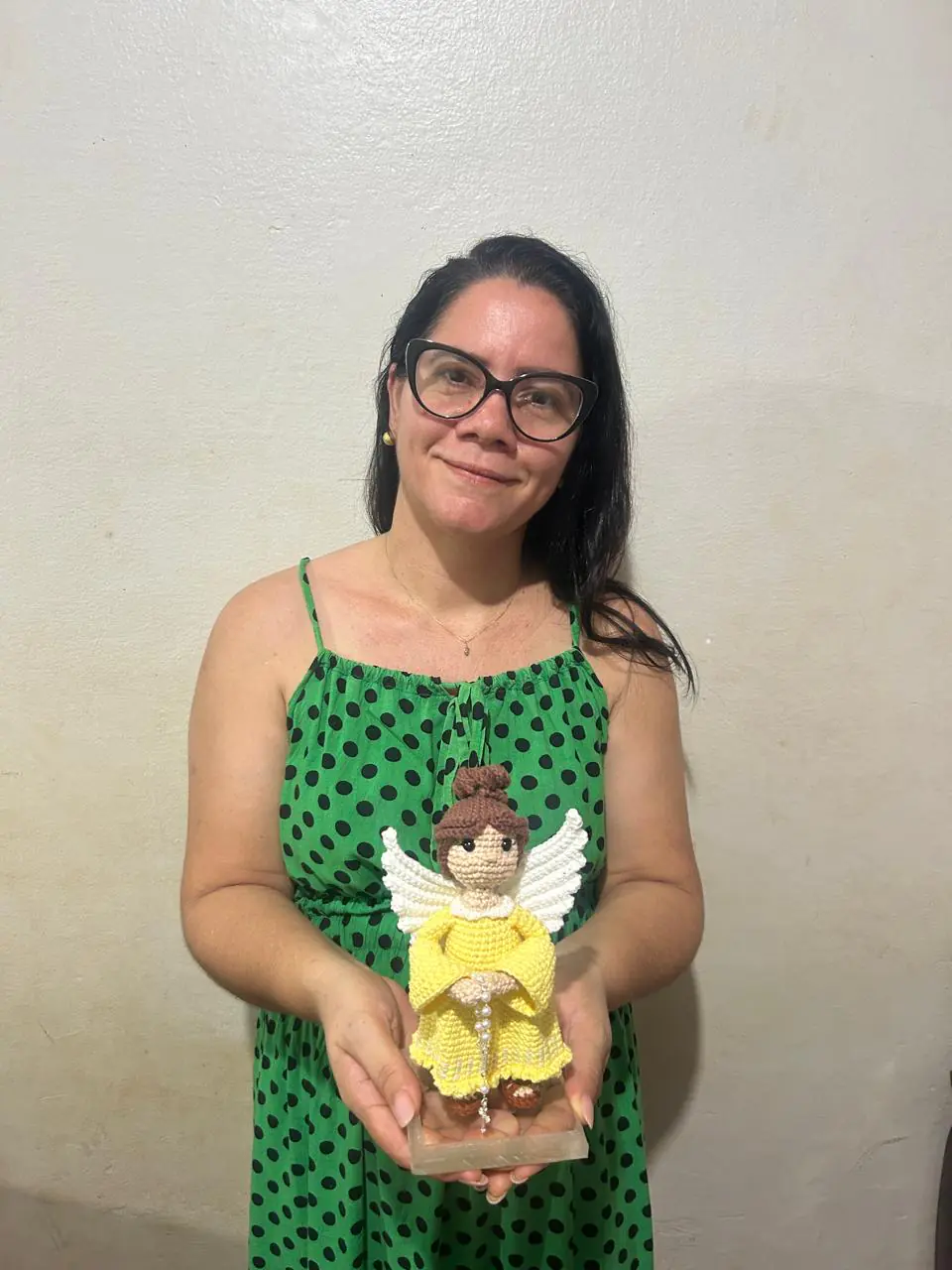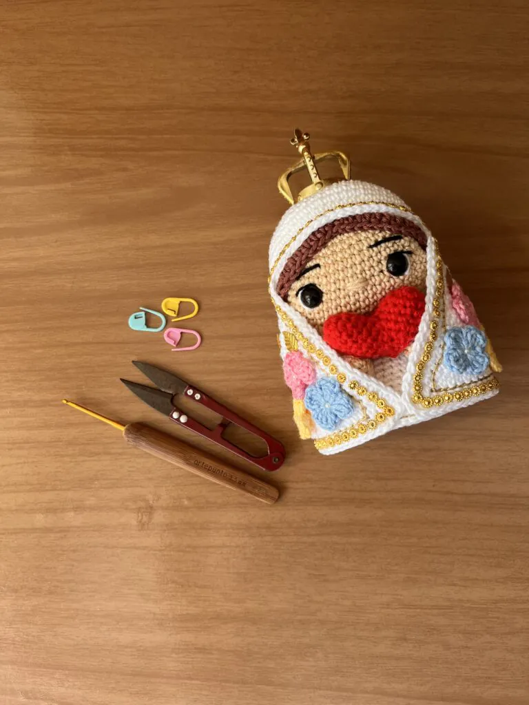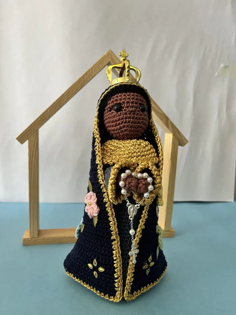 Com a maternidade, meu vínculo com o crochê ficou ainda mais forte. Em 2022, descobri o mundo mágico do Amigurumi e, desde a minha primeira santinha — a Nossa Senhora Aparecida — não parei mais. Fiquei encantada com o resultado e percebi que ali nascia um novo capítulo do meu trabalho.