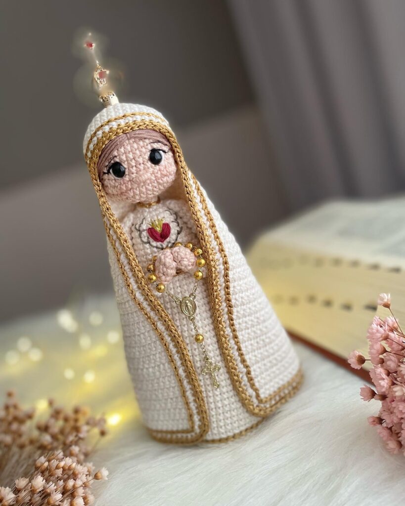 Olá! Me chamo Cristiane, tenho 38 anos, sou de Barbacena – Minas Gerais! Aprendi a crochetar bem novinha com minha família, mais o amigurumi ganhou meu coração! Amo transformar fios e levar o amor, a fé e tanto significado através das minhas santinhas.