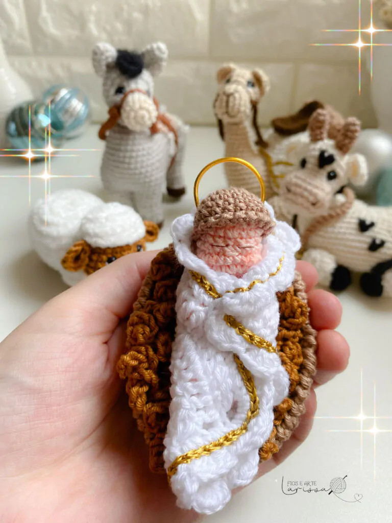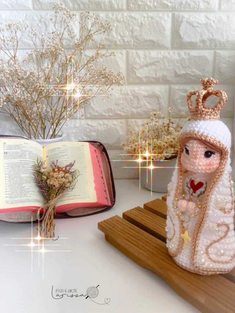 Eu sou a Larissa, tenho 37 anos, sou casada e tenho 2 filhos. Sou formada em Administração, e minha paixão é o amigurumi. Aprendi crochê em 2013, descobri o amigurumi em 2017 e tenho me dedicado a encomendas desde 2020. Estou começando a me aventurar nas criações de receitas, de Santinhos e Santinhas, para assim poder dividir com vocês. Espero que vocês gostem desse padrão e que essa receita influencie positivamente no seu trabalho ou em sua vida.