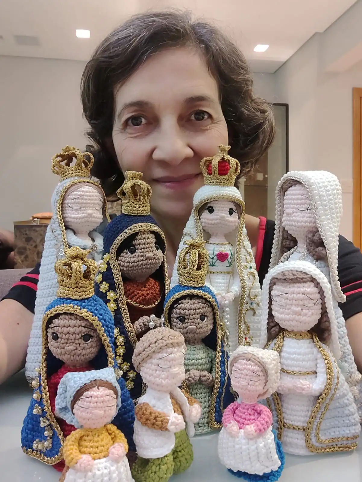 Meu nome é Regina Mara de Oliveira Furigo, moro em Santos/SP. Meu primeiro contato com o crochê foi aos 14 anos e desde então sempre gostei de trabalhos artesanais como o crochê e o bordado. Mas somente depois de muitos anos é que novamente o crochê voltou a fazer parte da minha vida. Foi quando me deparei com o Amigurumi: foi paixão à primeira vista. Amei, fiquei deslumbrada, querendo crochetar bonecas, bichinhos, etc. E quando conheci a Encantarte, admirada pelo trabalho, passei a me dedicar e melhorar cada vez mais as minhas peças. Hoje, amo o que faço e busco colocar muito sentimento em cada peça, muita dedicação e muito amor.