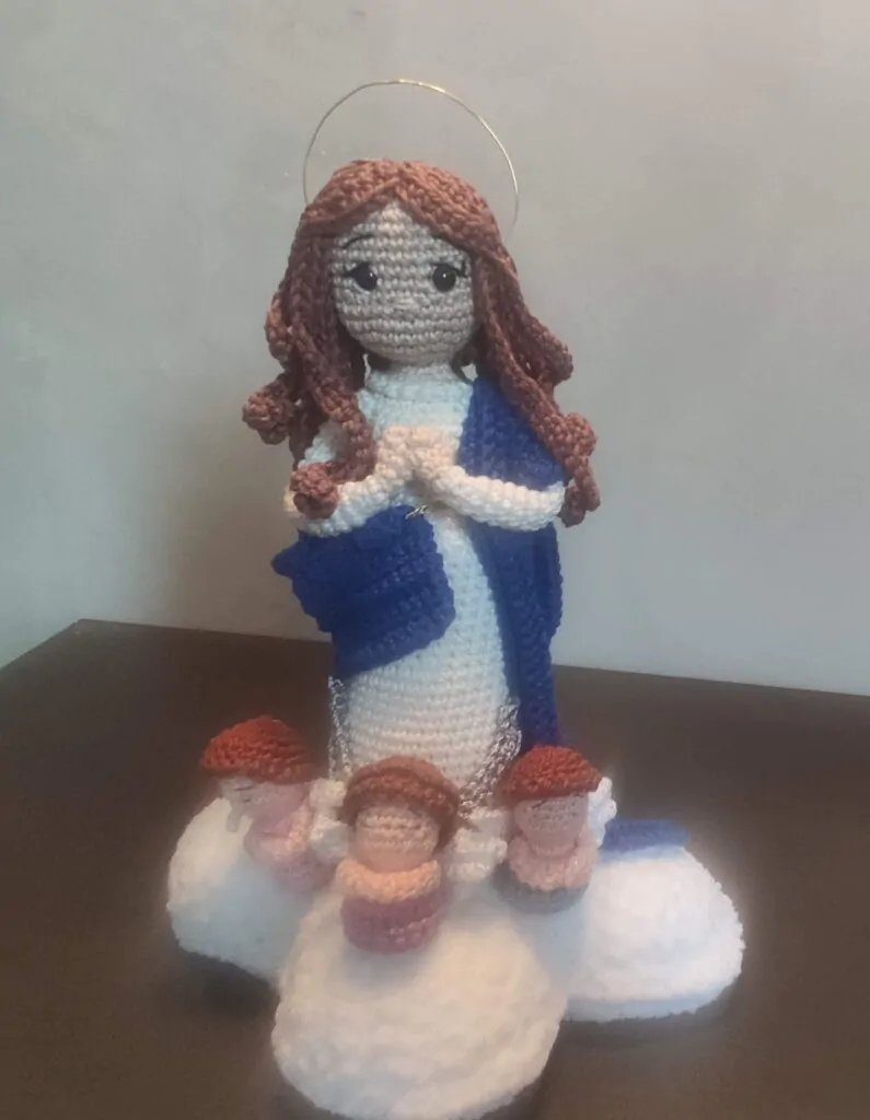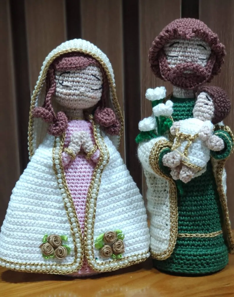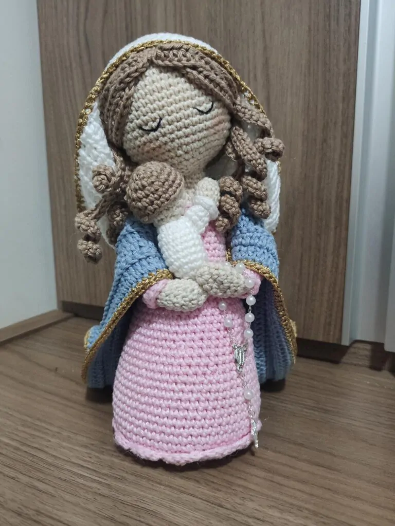 Olá. Meu nome é Rosenira de Freitas Gazolla. Ainda criança aprendi fazer crochê com minha mãe e minha irmã mas só depois de aposentada voltei a crochetar. O trabalho com amigurumi me encantou desde a primeira peça. Comecei fazendo bichinhos para presentear os amigos dos meus filhos e não parei mais. As santinhas são agora a minha paixão.