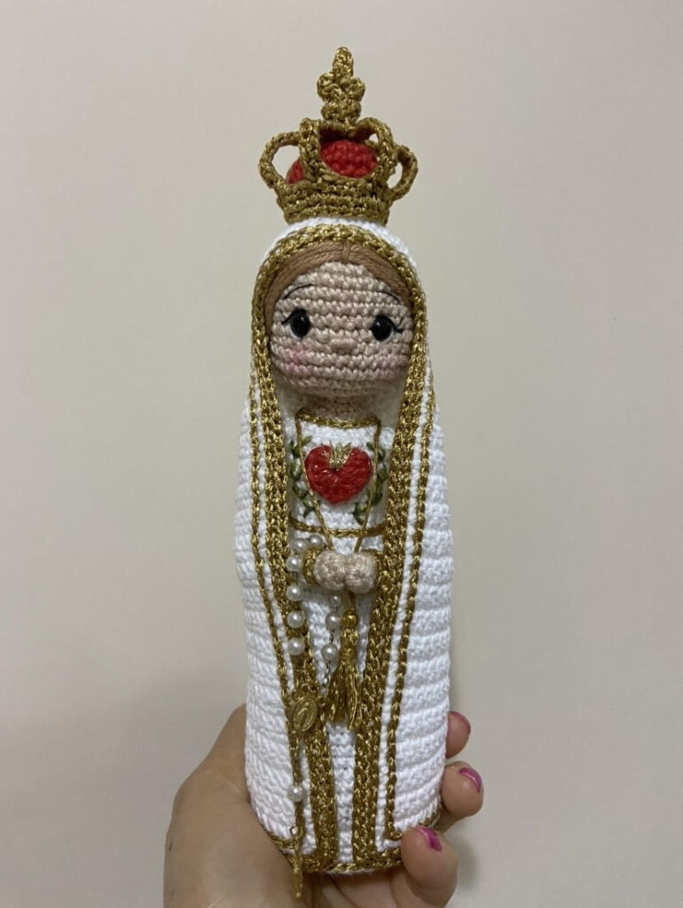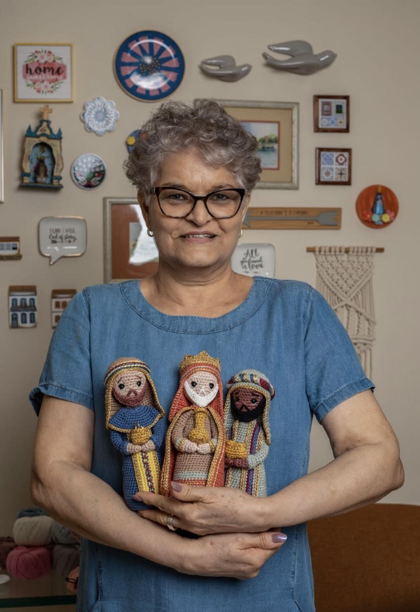 Olá! Meu nome é Sonia, sou mineira de Governador Valadares, professora de biologia aposentada. Comecei fazendo bijuterias e em 2016 eu e minha filha descobrimos a técnica do amigurumi. Começamos a vender as santinhas pelo instagram @bichimdecroche e desde então já enviamos encomendas para todo o Brasil e até para o exterior! Além dos santinhos, também faço presépios,