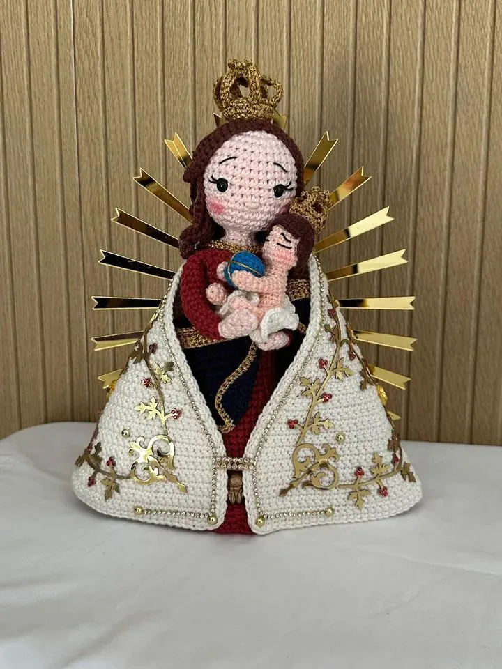 Faço vários modelos em vários tamanhos, como por exemplo: chaveiros, bonecas, personagens de desenho, bichinhos, porta maternidade, naninha, chocalhos e principalmente peças religiosas.